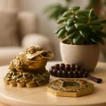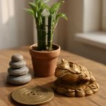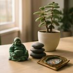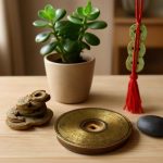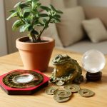 На данной территории хороши фонтанчики, домашние растения с листьями, напоминающими монеты, аквариумы с 9 рыбками, фигурки трехпалых жаб. Отлично подходит растение толстянка. Допустимо сделать ее имитацию, изготовив из бисера, монет и бумажных купюр.
